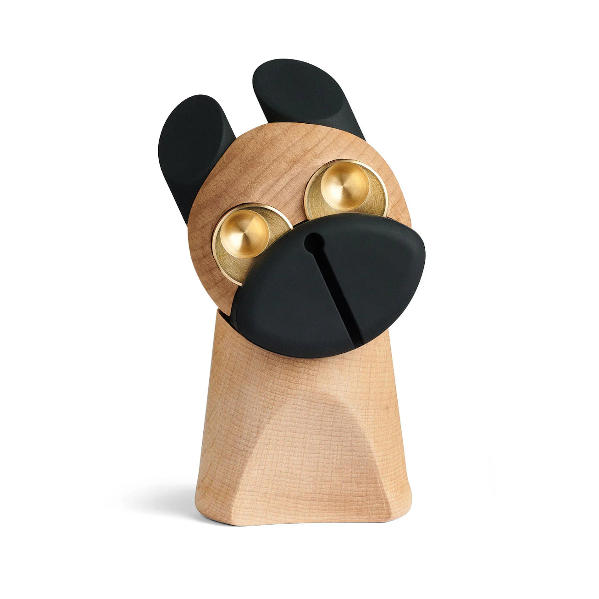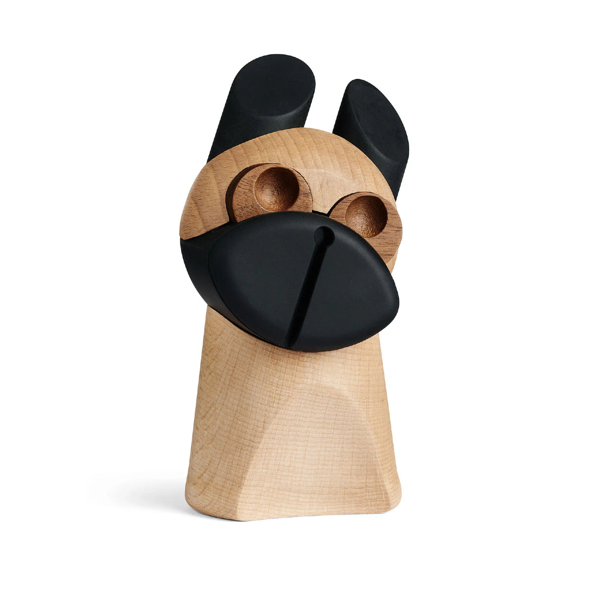 Designed by renowned designers Borg Brückner and Mikkel Lang Mikkelsen, this wooden dog figure is crafted with a strong focus on detail. Its body and head are made from carefully selected wood types to ensure both durability and aesthetic appeal, while its eyes - interchangeable between three different materials - add a personal touch. You can choose from copper, brass, or wood, allowing you to customize the figure’s expression to match your style and mood.